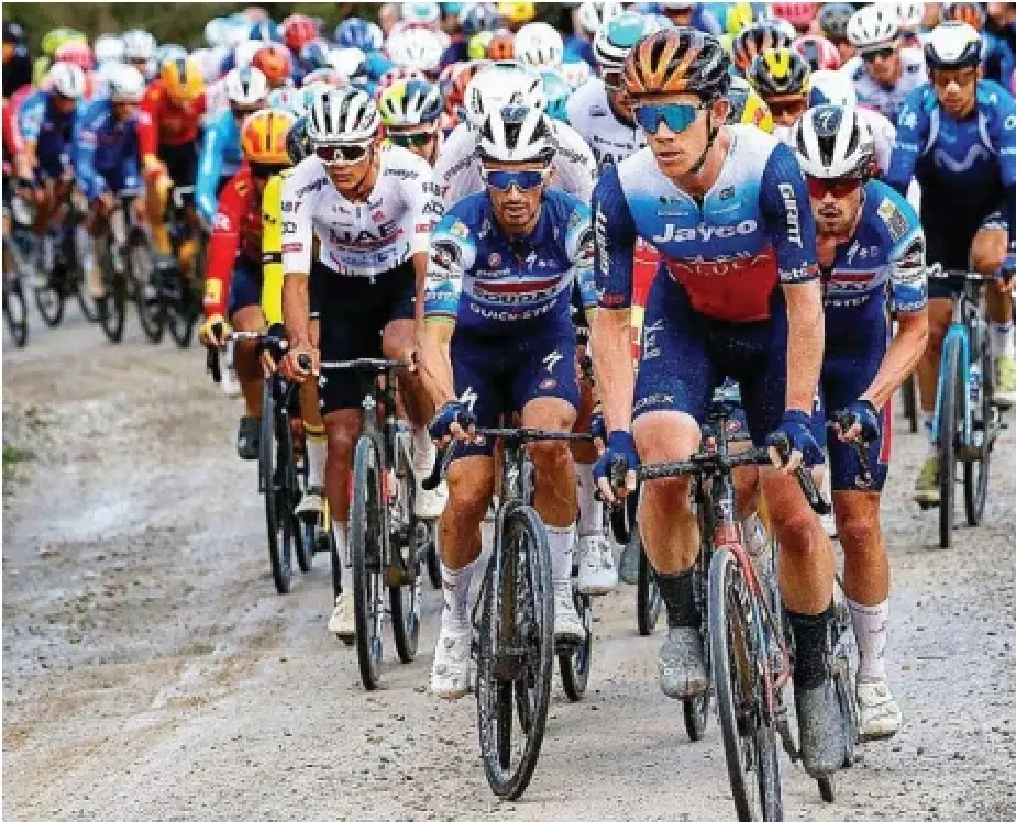Pogacar les avait renversés comme des soldats de plomb, pétrifiés par les éclaboussures de boue qui couvraient leurs visages et le délire dont ils venaient d’être les suppliciés. Pendant ses deux heures de solitude, on le vit d’ailleurs peu à l’écran, dans l’illustration qu’il n’évoluait pas sur la même planète, qu’il ne fréquentait pas les mêmes sphères. Il a aussi balayé toutes nos interrogations de Terriens, sur les possibilités qu’il puisse rebattre Jonas Vingegaard dans le Tour de France, sur qui de lui ou du Danois est le numéro1, notamment, interrogations futiles car Pogacar a bien d’autres desseins, à seulement25ans.