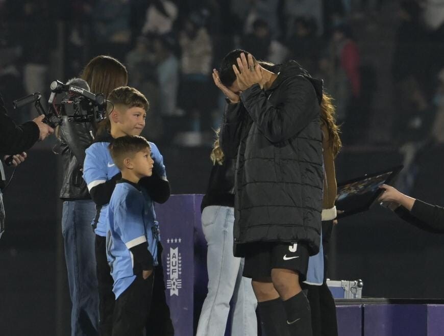 En el medio de la cancha, abrazado a su esposa y a sus tres hijos, rodeado de sus compañeros y amigos, después del saludo de Lionel Messi y de Neymar, de Enzo Francescoli y del Loco Abreu, Suárez llora.