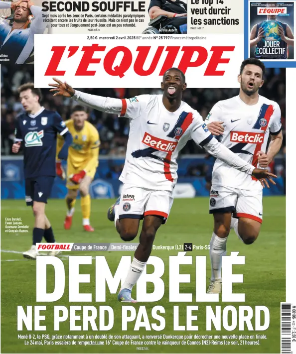 Deux buts, une passe dé’ pour sortir son équipe de l’ ornière et aller chercher une place en finale de la Coupe de France: Dembé lé (32 buts toutes compétition s confondues)est bien le patron duPSG sur le terrain. Il est devenu un match winner sur le modèle de son ami Kylian Mbappé dont il épouse l’état d’esprit. « On savait que ce serait un match difficile, ils ont éliminé Brest, Lille et Auxerre, soufflait-il au coup de sifflet final au micro de beIN Sports. Ils sont venus deux fois dans notre camp et ils nous ont fait mal. Maison est restés concentrés. Personnellement, à 0-2, j'ai senti un peu d'inquiétude, mais je suis resté dans mon match, on savait qu'on aurait des occasions de marquer. » Ne comptez plus sur lui pour vendanger. Ni pour se reposer sur ses lauriers. «Les prochaines échéances ? C’est là que se joue la saison. C'est là qu'on va voir les grands joueurs et les grandes équipes. » On a déjà hâte.
