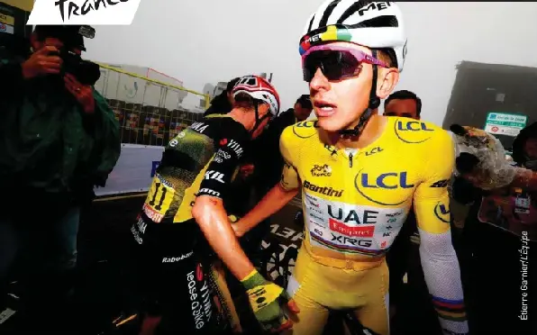 C’est difficile de choisir un moment en particulier. Car l’ambianceau sein de l’équipe, la façon dont nous avons abordé ce Tour, unis, nous a permis d’atteindre notre but. Peut être que le chrono sur le plat (2e de la 5e étape le 9 juillet, à Caen, il prend le Maillot Jaune et repousse Jonas Vingegaard à 1’13”) a été un des moments les plus importants car j’ai su à ce moment que j’avais les bonnes jambes pour aller au bout. Et puis il y a bien sûr lesAlpesoùj’ai pucontenirtouteslesattaque set assurermapremièreplaceau classementgénéral.