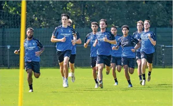 De nieuwe Duitse trainer Rüdiger Rehm heeft loopoefeningen uitgezet.