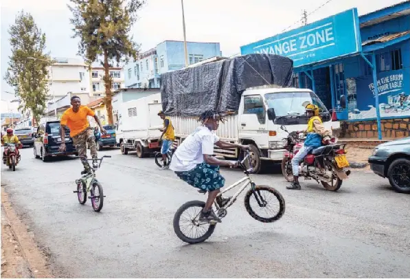 Oggi non ci sono ciclisti sul Muro. Ci sono, tuttavia, molte biciclette normali con cambio singolo, ampiamente utilizzate come mezzo di trasporto in Ruanda. Nel corso della giornata, diversi bidoni del latte, una collezione di assicelle, almeno 300 uova e una torre di barattoli di vernice alta almeno due metri passano in bicicletta. Gli automobilisti sono smontati e stanno spingendo i loro veicoli su per la ripida collina: andare in bicicletta non è un'opzione.