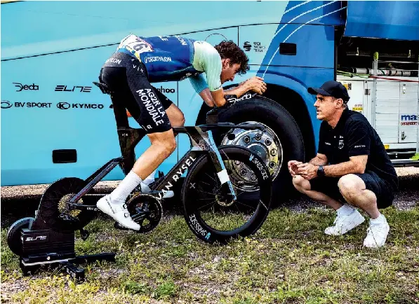 « On fait tout un foin du Tour 2026 pour lui », veut tempérer Thomas Voeckler, sélectionneur de l’équipe de France, dans les colonnes du Parisien. « Avant de penser à le voir performer sur le Tour, je rappelle qu’aucun Français n’a gagné une grosse course d’une semaine depuis 2007 (Christophe Moreau sur le Dauphiné). Il y a peut-être là un challenge qui peut l’intéresser. » En attendant de connaître son programme, peut-être dès le 11 décembre lors de la présentation de Decathlon-CMA CGM, nous avons pris la température auprès de Jean-Baptiste Quiclet, directeur de la performance au sein de la formation française : « Sans faire de langue de bois, tous les scénarios sont possibles. Il pourrait faire une saison sans Grand Tour, tout comme disputer le Giro, le Tour ou la Vuelta. Cela dépendra aussi de la temporalité du Grand Tour dans l’année, avec la possibilité de multiplier les courses d’apprentissage d’une semaine. Il y a aussi la perspective, vu sa prestation à Kigali, du Championnat du monde à Montréal (le 27 septembre, deux semaines après la fin de la Vuelta). Plusieurs projets s’entrechoquent : courses d’un jour, Monuments, grands championnats et Grands Tours. Une chose est sûre, c’est qu’il faudra choisir pour réussir. On s’adaptera aux circonstances qu’il rencontrera dans la saison. On ne veut surtout pas casser la dynamique positive. Car chaque mois qui passe, c’est un nouveau Paul. » Ce souci d’adaptation permanent était déjà la règle, en 2025, sa découverte du World Tour s’étant écoulée selon « une approche en tiroirs ». Concrètement, chaque étape validée lui a permis d’accéder au « tiroir suivant ». Son Tour des Alpes (trois podiums d’étapes, 12e du général) lui a ouvert la route du Dauphiné (8e), dont la réussite lui a permis d’envisager les Mondiaux. « En 2025, on est allé au bout du scénario le plus optimiste imaginé », affirme Quiclet. En 2025, chaque étape validée lui a permis d’accéder au « tiroir suivant » : 8e du Dauphiné (ici avec le DS Sébastien Joly), il a pu envisager les Mondiaux.